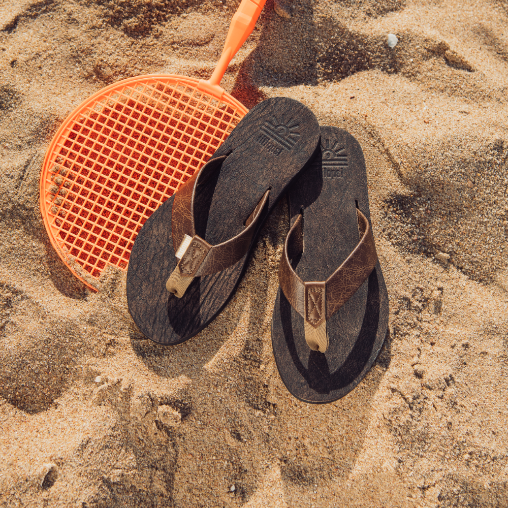 We wanted something truly South African, something that is truly unique, not only in the look, but in the feel too. After trialing a number of different types of exotic leathers, Genuine African Buffalo was the perfect fit! An extraordinary leather, very tough underneath and so very soft on the touch, perfect for a premium plakkie! We are very proud of our Buffalo Soldiers, and you will be too! These flip flops are designed with a cushioned footbed that offers excellent comfort for all-day wear. Its flexible rubber outsole ensures reliable traction, making it perfect for a variety of surfaces, whether you're heading to the beach with friends or going for a braai with family. With its combination of comfort, support, and sleek design, our iiflopsi Buffalo Soldiers are a perfect go-to footwear for those who want both style, functionality and durability. All of our materials are sources locally and we handmake each and every pair in our factory in KZN.
