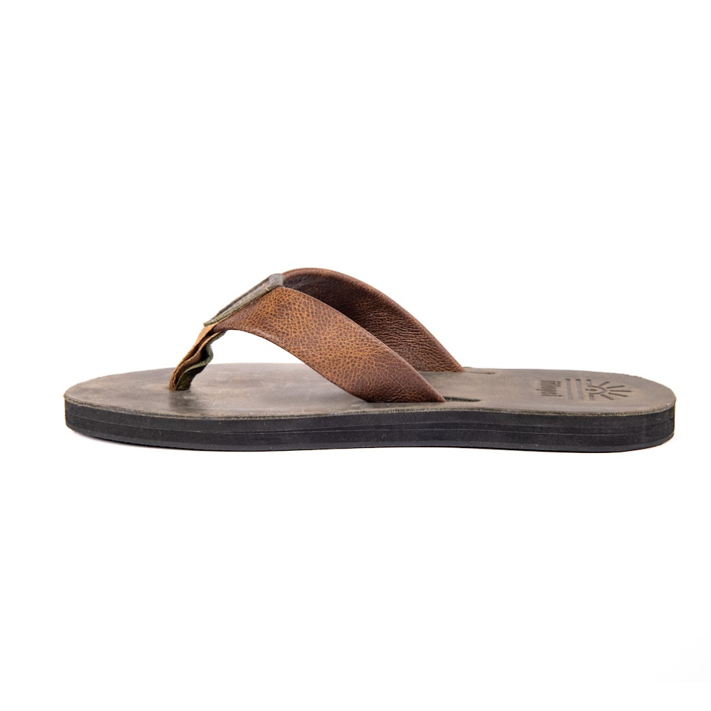 All of our sandals are handmade locally with luxury full grain leather straps and uppers with a polyester toe strap. The mid sole is made of memory foam specially designed to take on the shape of your foot. Over time the sandal will become more and more comfortable. The sole is made of rubber for increased longevity. The best and easiest way to clean your sandals is with luke warm soapy water and a sponge. Do not use chemicals as this will affect the leather and may cause delamination of the layers.
